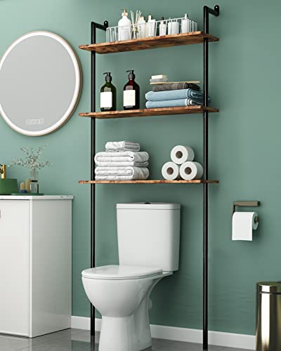 Fits most toilets: The size of the toilet storage is 25” W x 10” D x 78” H. The bottom shelf is 37.5 inches off the floor, so it fits most toilets and avoids toilet plumbing valves.