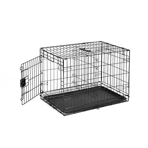 Amazon Basics Foldable Metal Wire Dog Crate with Tray, Single Door, 30 Inches, Black
