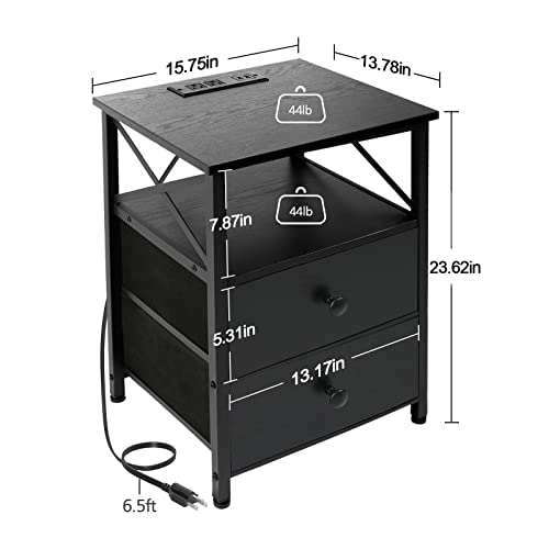 【Expand Storage Space】2 smooth and sturdy fabric drawers can store books, newspapers, remote controls etc. , helping avoid chaos. Charging phones, labtop, lamp etc. can be put on the top of the nightstands. The size of 15.7”L x 13.8”W x 23.8”H makes the end tables easily fit in small spaces.