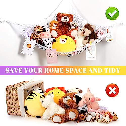 The stuffed animals net can be applied for holding stuffed animal, stuffed pet toy, dolls, blanket, towel, etc., suitable for decorating bedroom, living room, playroom, nursery, kindergarten and more.