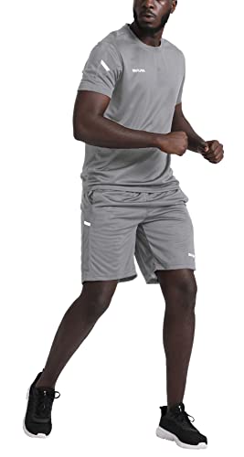 BUYJYA Men’s Workout Clothes Athletic Shorts Shirt Set 3 Pack for Basketball Football Exercise Training Running Gym