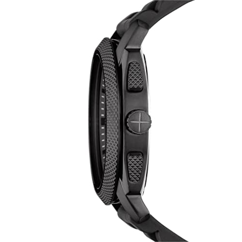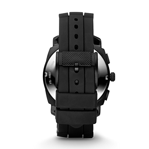 Black stainless steel case with black dial; black silicone-coated stainless steel bracelet band; links can be removed for a customized fit; interchangeable with all 24mm Fossil watch straps