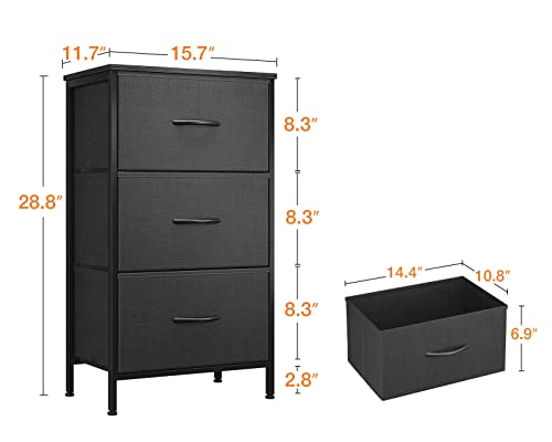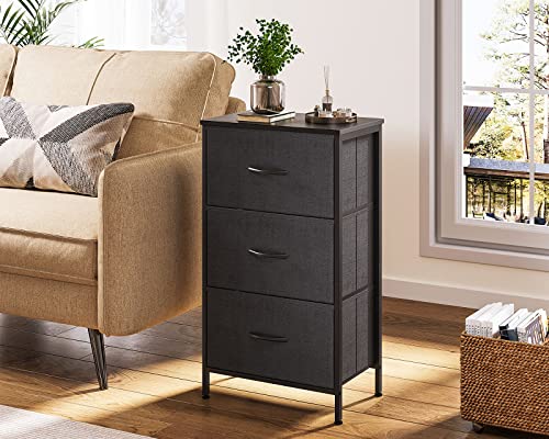 KKL Dresser for Bedroom with 3 Drawers, Fabric Storage Nightstands, Small Chest of Drawers, Bedside Table with Removable Bins Organizer Unit for Living Room Closet College Dorm Office, Black
