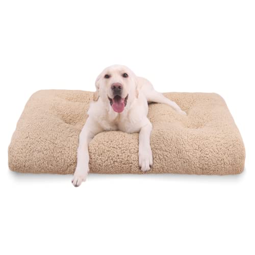 Large Dog Bed for Crate, Washable Dog Beds for Large Dogs, Ultra Deluxe Sherpa Kennel Pad, Fluffy Pet Mats with Durable Anti-Slip Bottom, 35″x23″, Beige