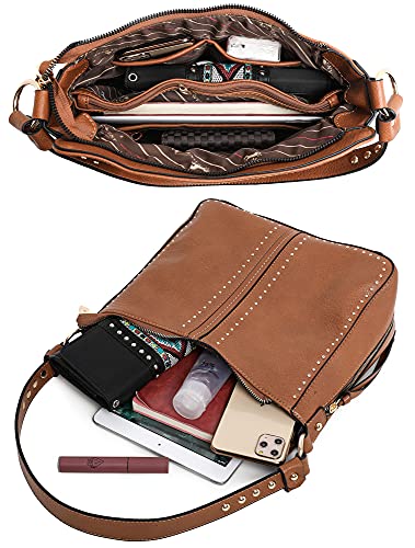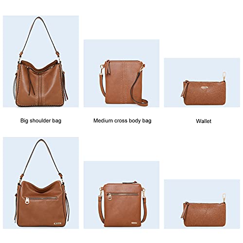 ❤【3 Piece Purse Set】 1 Large hobo bags for women with detachable crossbody strap + 1 Medium Crossbody Bag with studs+ 1 Wristlet Wallet.