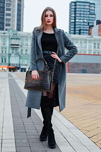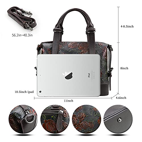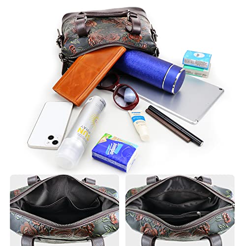 Purse and Handbags for Women Leather Shoulder Hand Bags Tote Handle Medium Satchel Vintage Embossing Rose