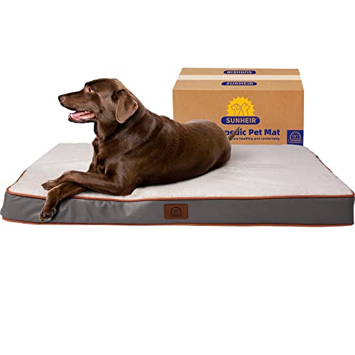 Sunheir Orthopedic Dog Bed for Large Dog – Memory Egg-Crate Foam with Removable Washable Cover – Waterproof Mattress for Pet (Large, Grey)