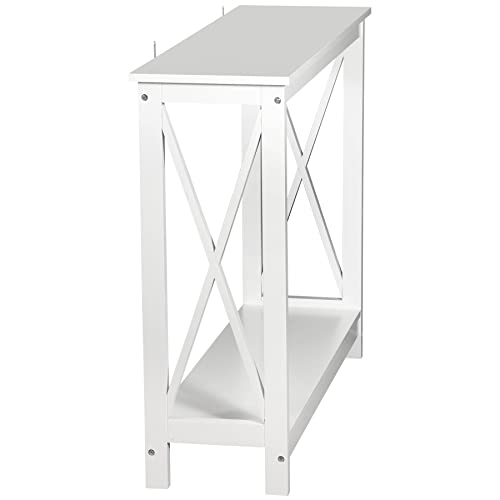 SUPER DEAL 2-Tier Narrow Console Sofa Side Table for Entryway/Hallway/Living Room, 39.3in L x 11.8in W x 31.6in H, White