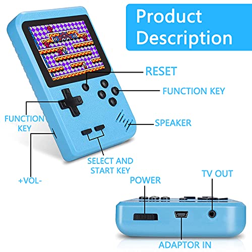 Tlsdosp Retro Handheld Game Console with 400 Classical FC Games-3.0 Inches Screen Portable Video Game Consoles with Protective Shell-Handheld Video Games Support for Connecting TV & Two Players (Blue)
