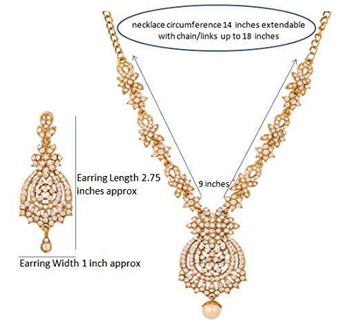 Touchstone Indian Bollywood Gorgeous Intricate Workmanship Sparkling Rhinestone Crystal Wedding Designer Jewelry Necklace Set in Gold or Silver Tone for Women.
