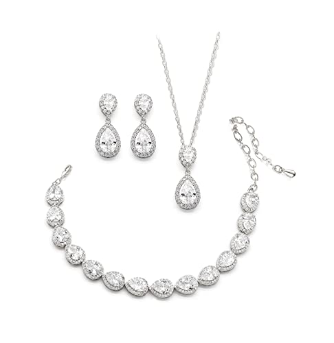 UDYLGOON Cubic Zirconia Crystal Bridal Jewelry Set for Bride Bridesmaid Wedding Prom Teardrop Necklace Earrings Bracelet Jewellery Set