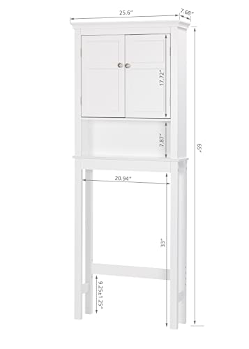 UTEX Bathroom Storage Over The Toilet, Bathroom Cabinet Organizer with Adjustable Shelves, Bathroom Space Saver for Bathroom, White