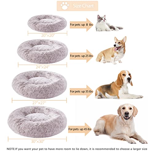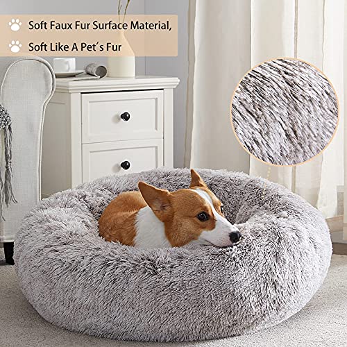 WNPETHOME Calming Dog Bed & Cat Bed,Small Dog Bed Donut Design Faux Fur Anti-Anxiety Dog Bed,Fluffy Pet Cushion Dog Bed for Small Dogs and Cats (20 x 20 inch, Light Coffee)