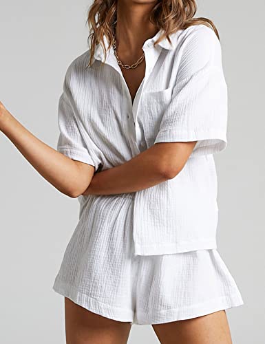 Women’s 2 Piece Outfits Track Suits Matching Sets Loungewear for Vacation Button Down Shirt and Shorts Set