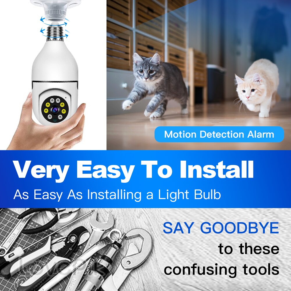 Easy to install without drilling, installing the E27 camera is as easy as installing your own light bulb at home